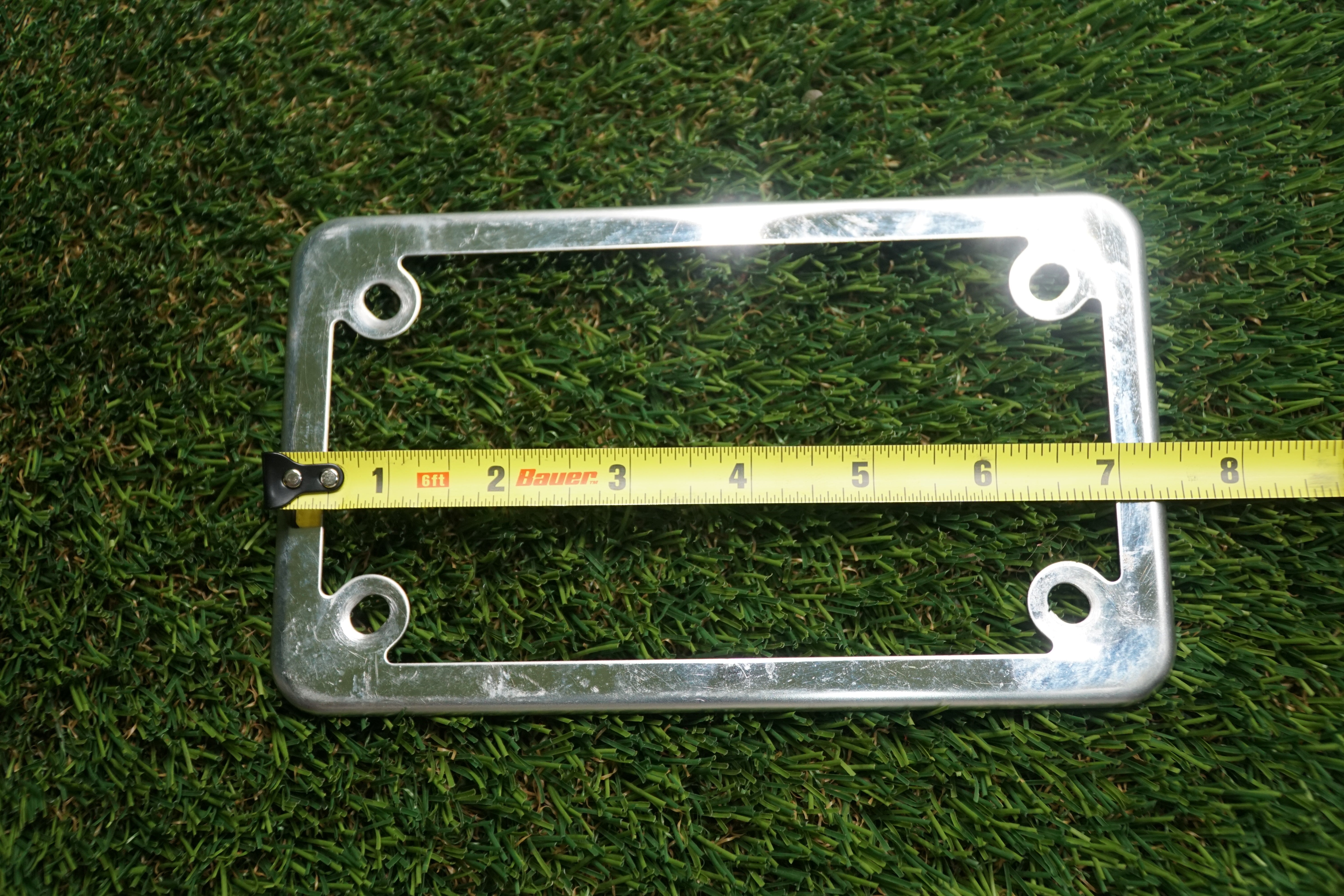 Used Harley-Davidson chrome license plate bezel measuring approximately 7-3/8” x 4-1/4”. This frame is in fair overall condition, showing surface... Read more