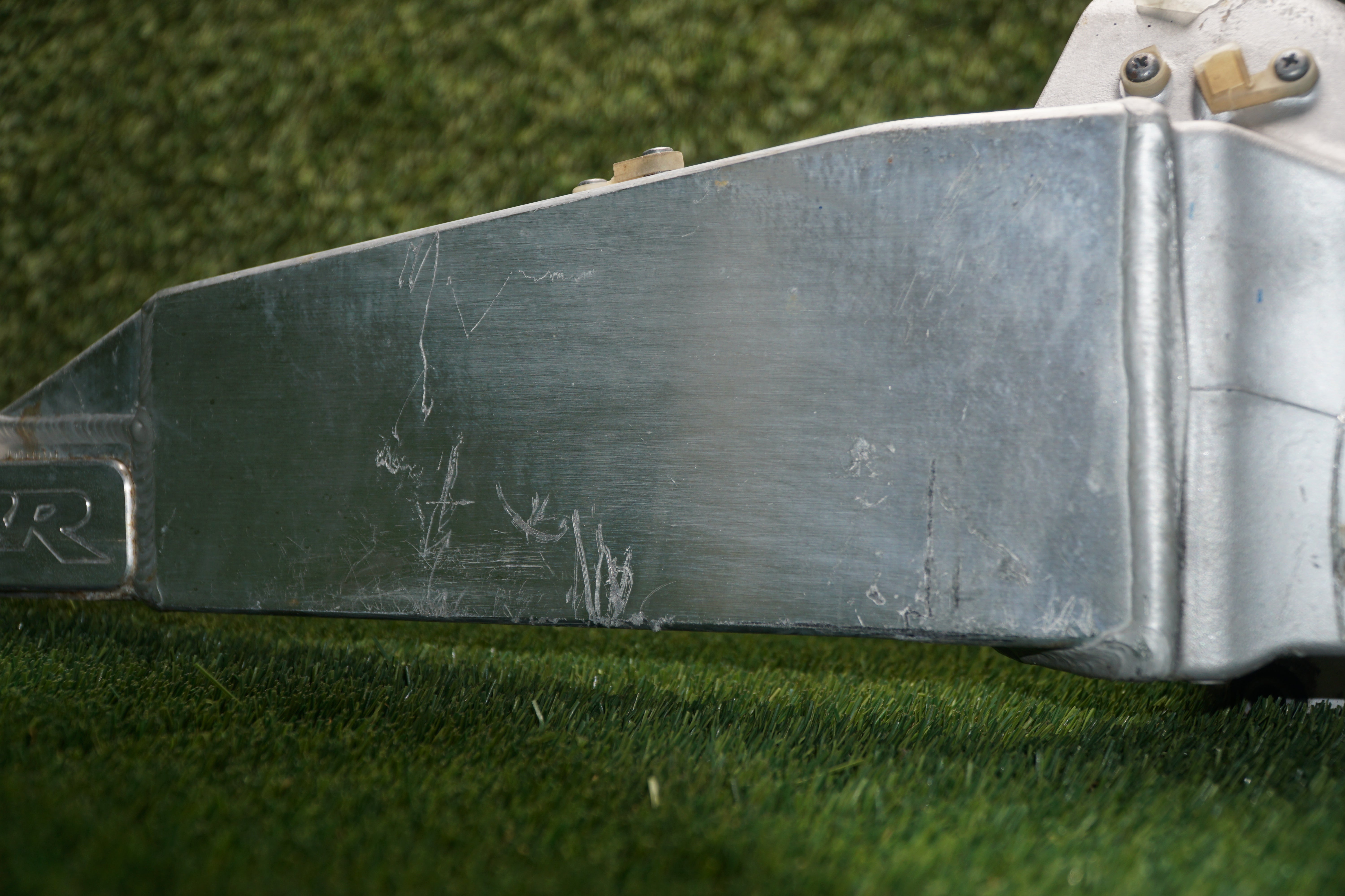 There is a small crack shown in photos, and the price reflects the condition. Still an excellent base for repair, welding, polishing, or modification. Comes exactly as shown.