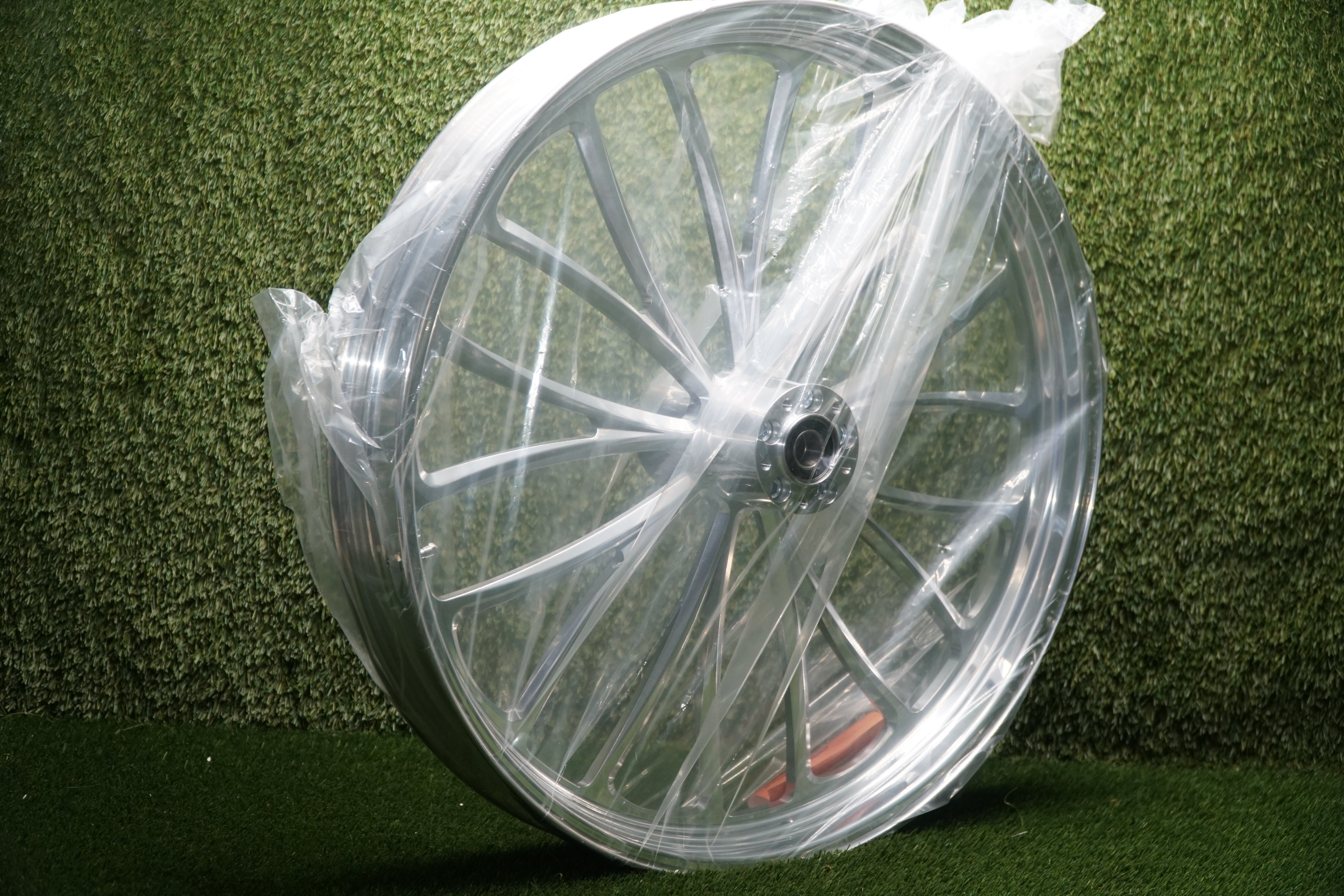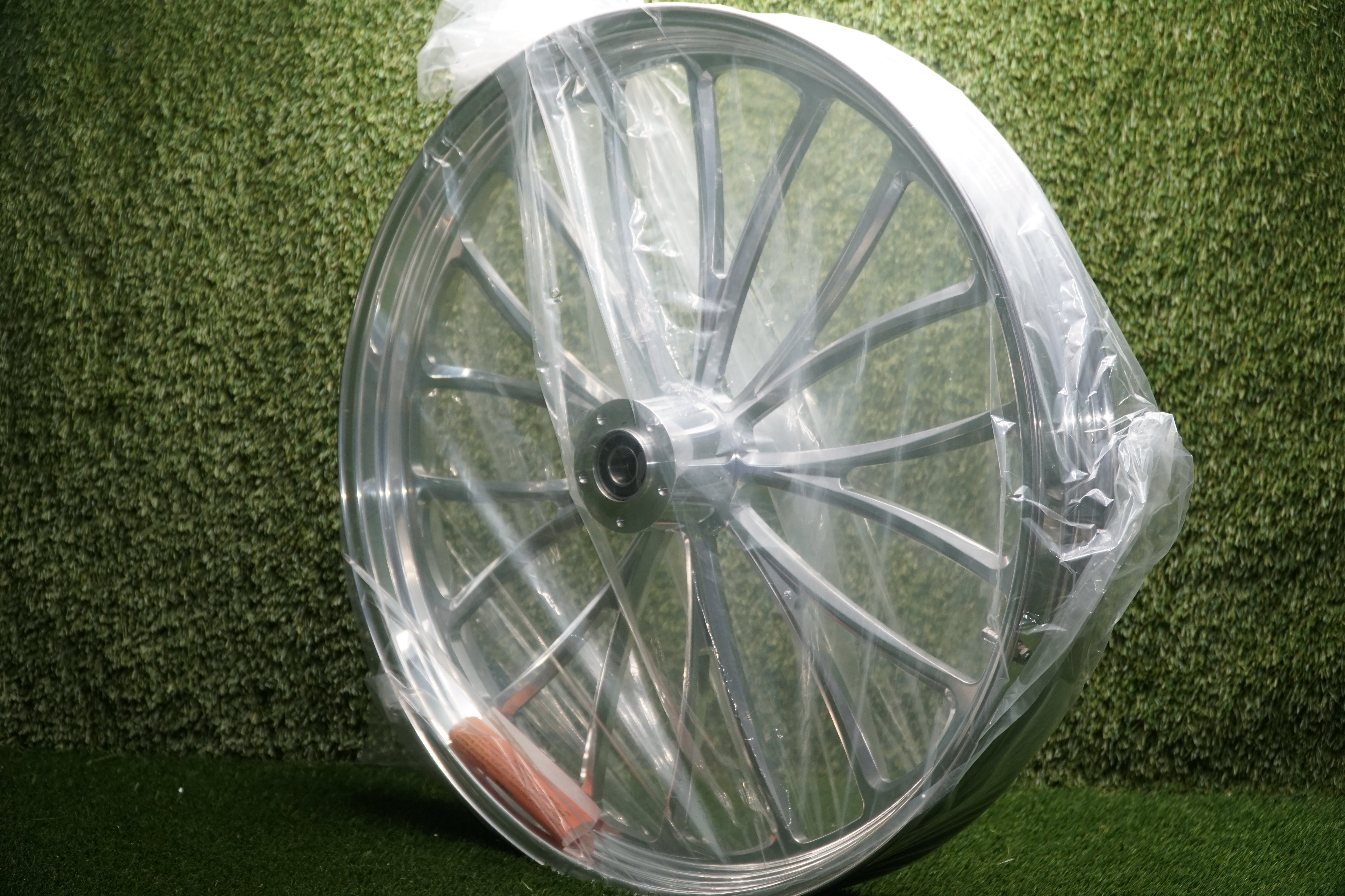What I have for sale is a brand new Ultima Manhattan CNC-machined front wheel, size 26 x 3.5, finished in a high-polish aluminum finish. This wheel is new in the box and has never been mounted.